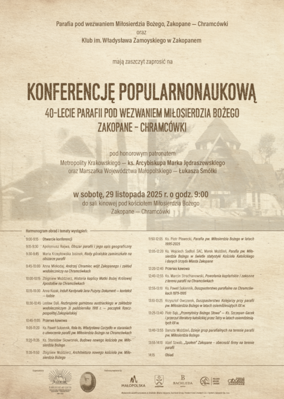 Konferencję Popularnonaukową 40-lecie Parafii Pod Wezwaniem Miłosierdzia Bożego Zakopane -...