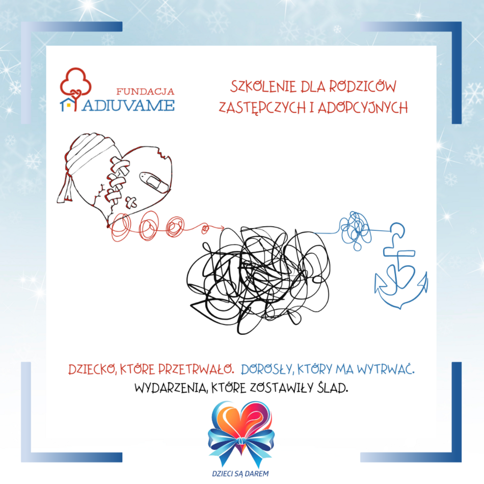 Stowarzyszenie Rodzin Zastępczych i Adopcyjnych „Dzieci są darem” wraz z Fundacją ADIUVAME zapraszają rodziców adopcyjnych i zastępczych na szkolenie „Codzienność z traumą”, które odbędzie się 17 stycznia w Zakopanem. Obowiązują zgłoszenia.