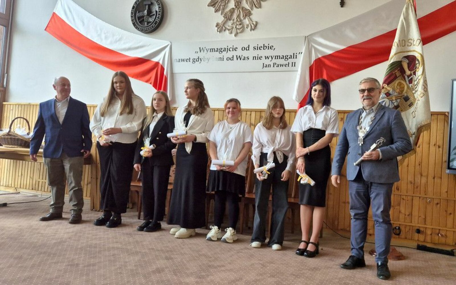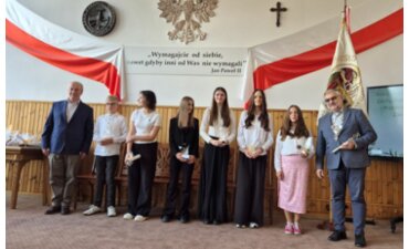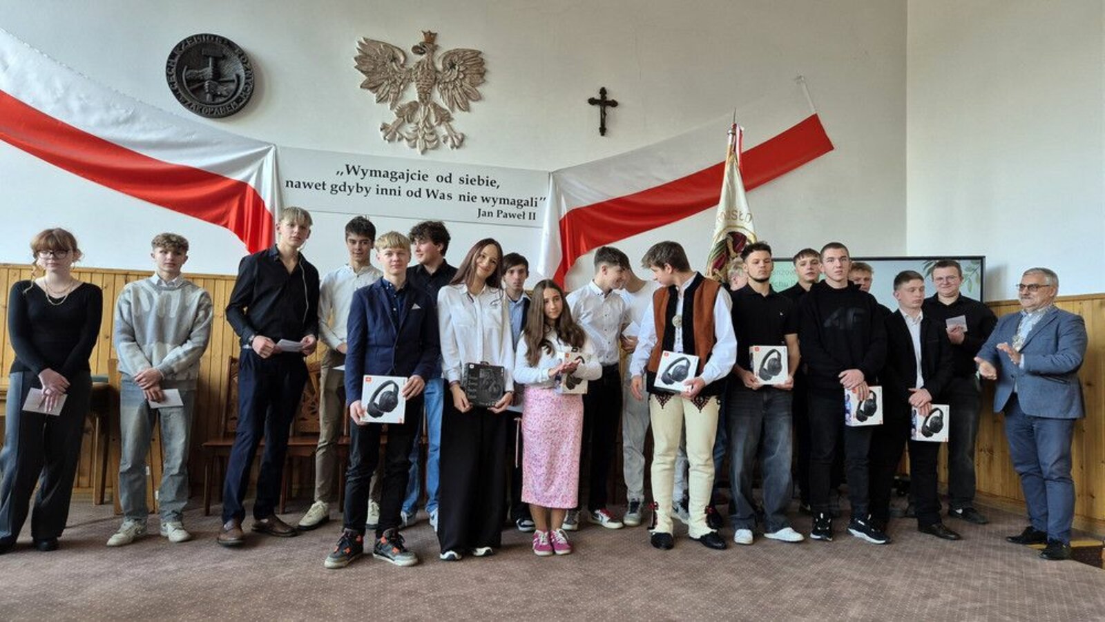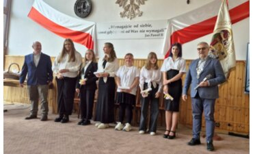 W tym dniu wręczone zostały także stypendia sportowe i naukowe oraz nagrody za szczególe osiągnięcia dla uczniów szkoły. Z kolei młodzież przygotowała dla grona pedagogicznego i zaproszonych gości kwiaty, upominki oraz krótki program artystyczny. Uroczystość poprowadził Dyrektor Szkoły Artur Skiepko.