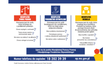 Nieodpłatna pomoc prawna, poradnictwo obywatelskie oraz mediacje