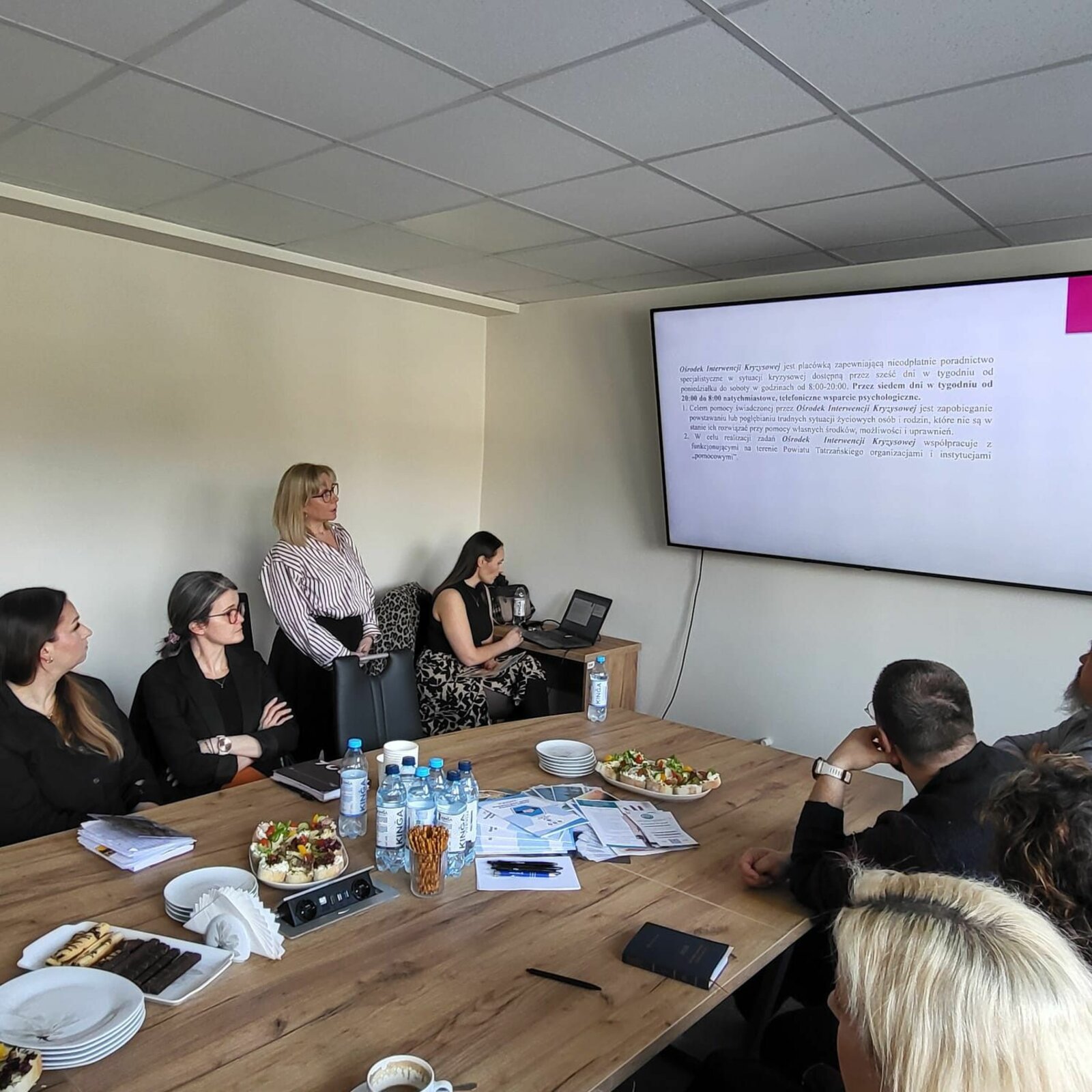 1. Dyrektor Tatrzańskiego Ośrodka Interwencji Kryzysowej i Wsparcia Osób Doznających Przemocy Domowej w Zakopanem Dorota Grzeszczak przedstawiła krótką prezentację oferty ośrodka  dla rodzin w kryzysie opiekuńczo-wychowawczym.