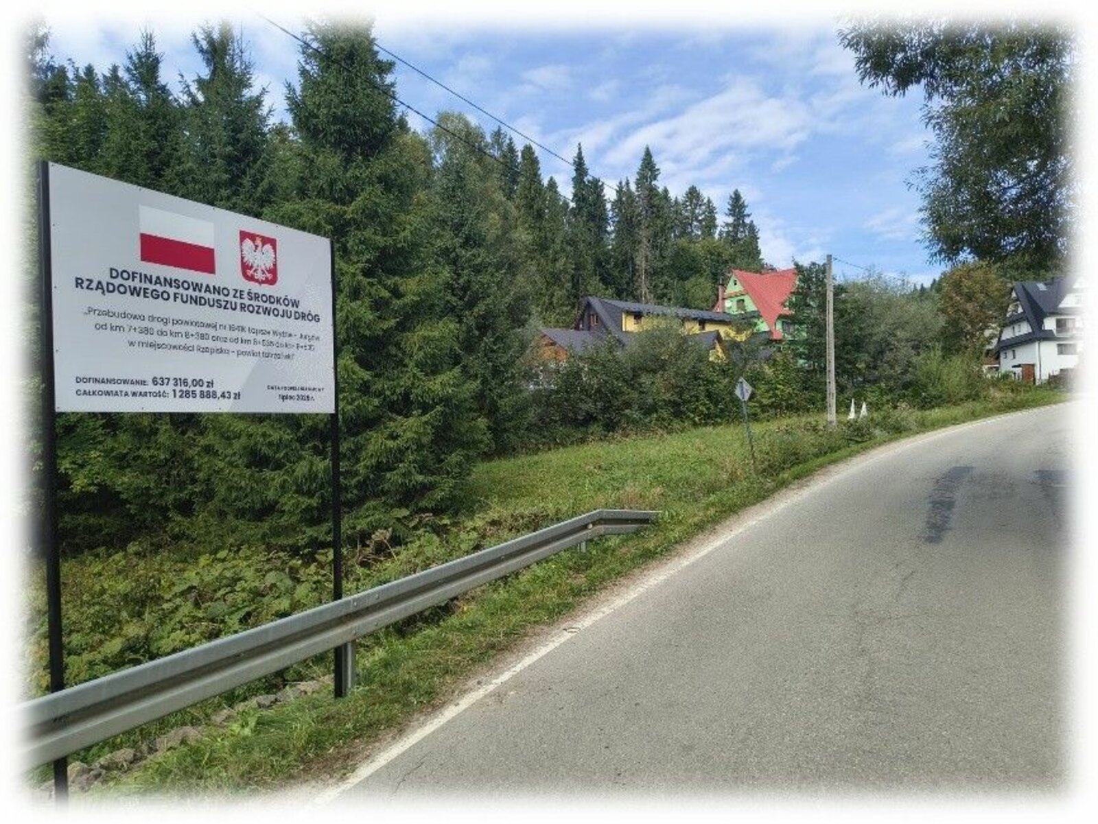 Lokalizacja tablicy informacyjnej – „Przebudowa drogi powiatowej nr 1641K Łapsze Wyżne – Jurgów od km 7+380 do km 8+380 oraz od km 8+535 do km 9+535 w miejscowości Rzepiska – powiat tatrzański”