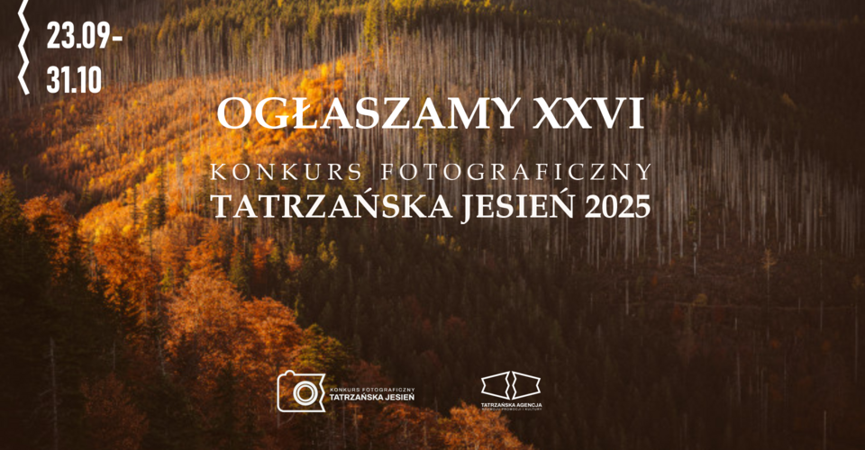 Rozpoczynamy XXVI Edycję Konkursu „Tatrzańska Jesień 2025”! Celem konkursu jest uchwycenie chwili, zatrzymanej w obiektywie aparatu i odkrycie unikalnej wrażliwości na piękno jesiennych pejzaży Tatr. Konkurs ma na celu promowanie artystycznej interpretacji tatrzańskiej przyrody, a także dzielenie się osobistym spojrzeniem na otaczający świat poprzez fotografie.