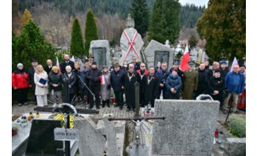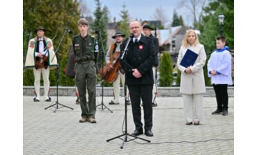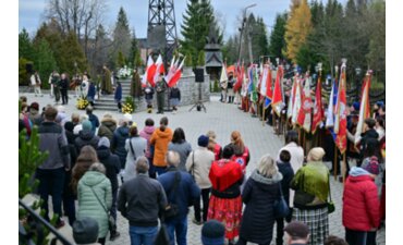 Ostatnim etapem było uroczyste wmurowanie ziemi z Sobiboru pod Krzyżem - Miejscu Pamięci Narodowej z udziałem między innymi Burmistrza Łukasza Filipowicza, kustosza Sanktuarium Narodowego Matki Boskiej Fatimskiej w Zakopanem, ks. dr Mariana Muchy oraz radnych powiatowych Wiesława Lenarta i Piotra Bąka, który to wygłosił przemowę, przybliżającą i przypominającą nam ważny kontekst historyczny polskiej walki o niepodległość. Wydarzenie zamknęło złożenie pod Krzyżem wieńców przez zebrane delegacje.
