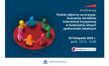 25 listopada w Biurze Rzecznika Praw Obywatelskich odbyła się konferencja "Powiat odporny na kryzysy. Znaczenie OIK w budowaniu silnych społeczności lokalnych". Jej uczestnicy rozmawiali na temat skutecznych rozwiązań dla powiatów w obszarze interwencji kryzysowej. Prezentowane były także dobre praktyki samorządów, a wśród nich „Łączenie ośrodków w jednej placówce: Ośrodka Interwencji Kryzysowej i Specjalistycznego Ośrodka Wsparcia dla Osób Doznających Przemocy w Zakopanem. Opowiadali o niej Wiesław Lenart, członek zarządu Powiatu Tatrzańskiego oraz dyrektor Ośrodka Bożena Bryl.