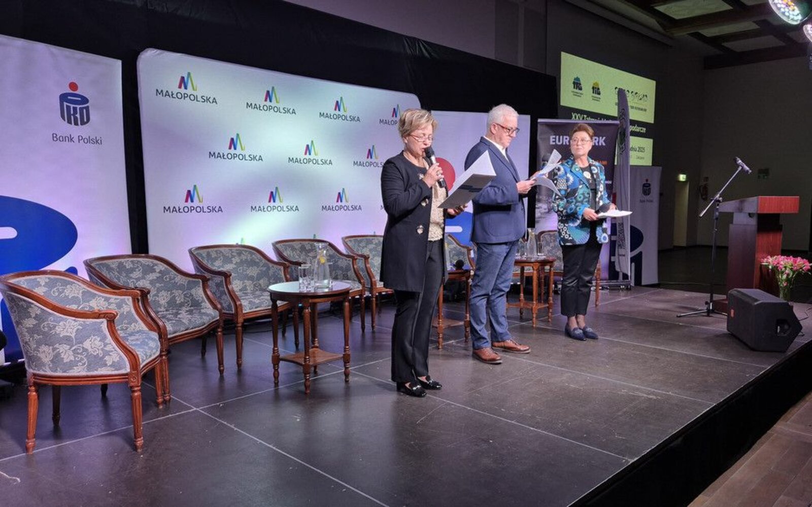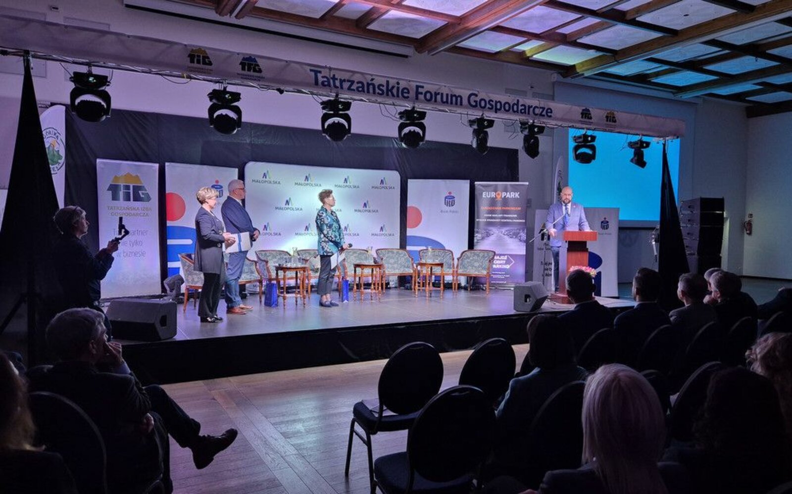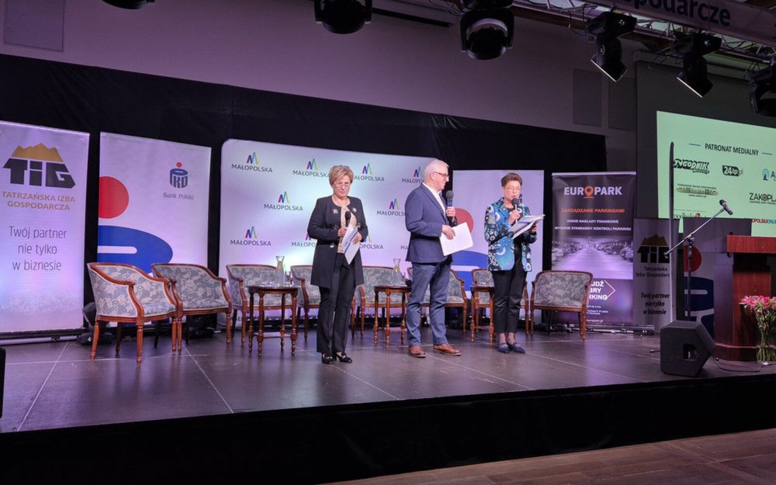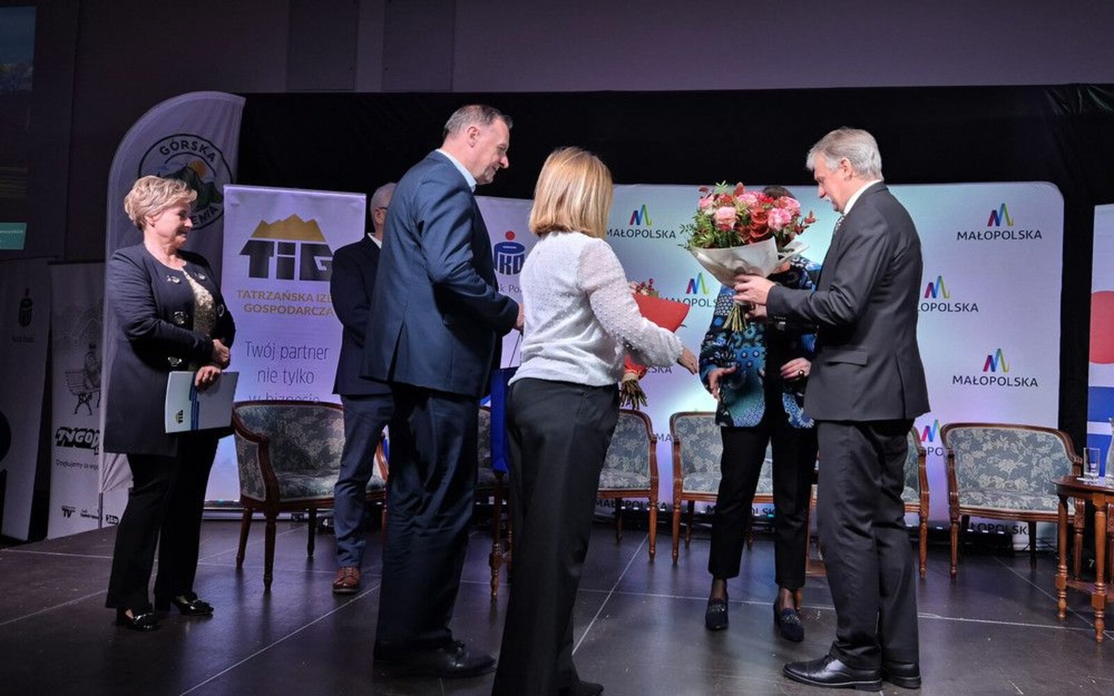 Tatrzańskie Forum Gospodarcze od zawsze było przestrzenią dialogu, swobodnej wymiany idei i doświadczeń. Z okazji jego jubileuszowej edycji przedstawiciele Powiatu Tatrzańskiego Starosta Andrzej Skupień, Wicestarosta Wawrzyniec Bystrzycki oraz Sekretarz Helena Buńda złożyli podziękowania, życzenia i gratulacje na ręce Zarządu Tatrzańskiej Izby Gospodarczej - Elżbiety Agaty Wojtowicz, Anny Gąsiorowskiej i Czesława Ślimaka.