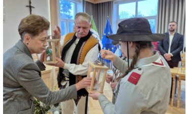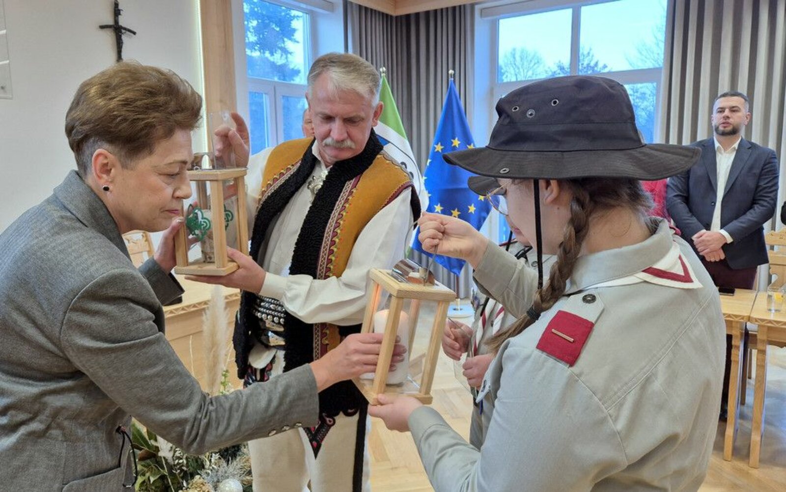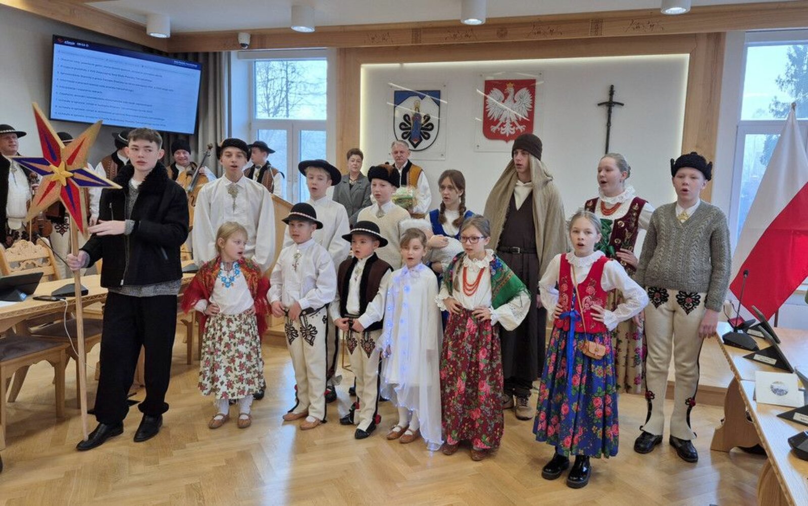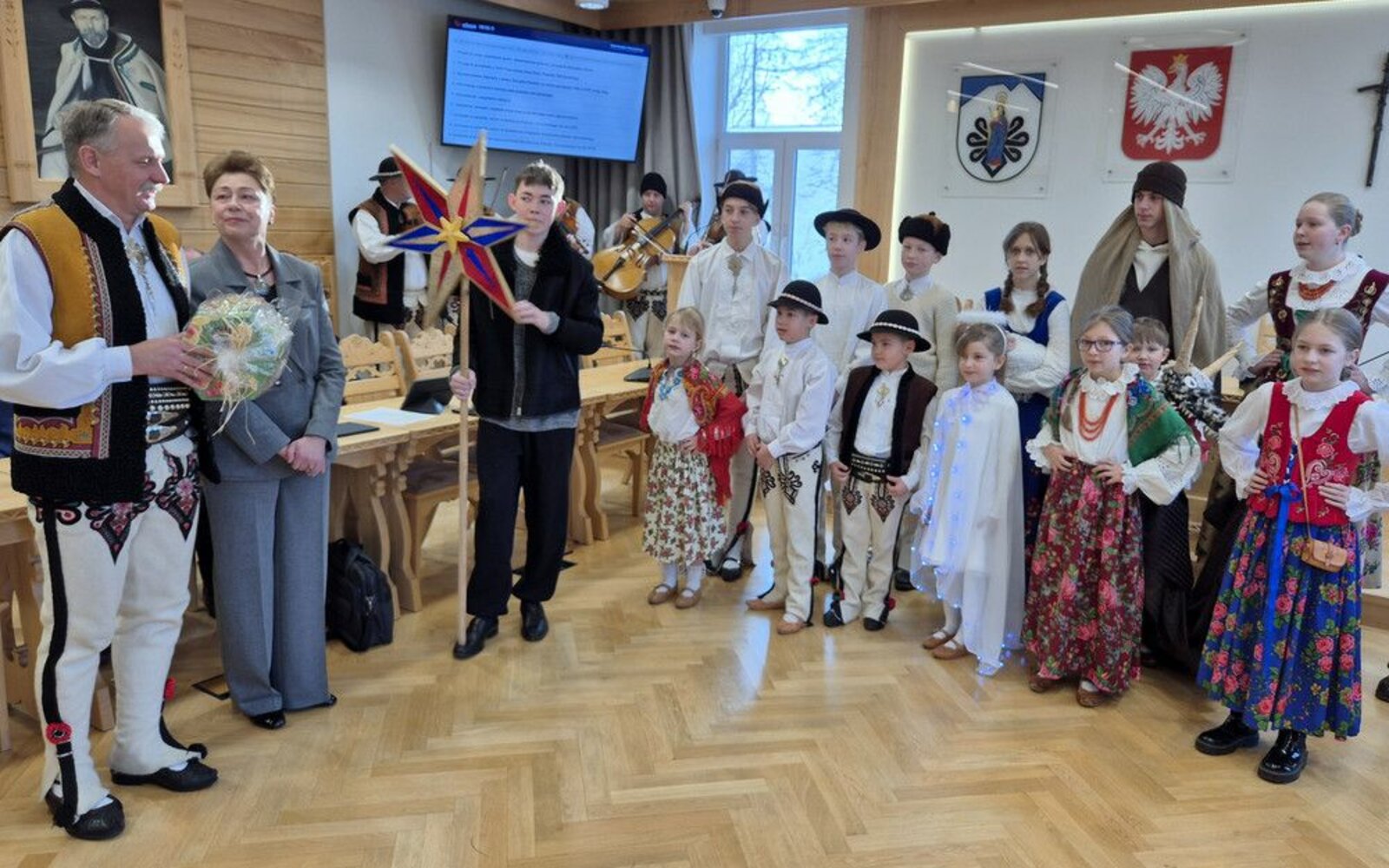 Dzisiejsza XVIII Sesja Rady Powiatu Tatrzańskiego miała wyjątkowy świąteczny charakter. Rozpoczęło ją wspólne kolędowanie, łamanie się opłatkiem i składanie życzeń. Betlejemskie Światło Pokoju na ręce Starosty Andrzeja Skupnia i Przewodniczącej Rady Powiatu Elżbiety Agaty Wojtowicz przekazały harcerki z 2 Podhalańskiej Drużyny Harcerskiej „Wagabundy” w Zakopanem. Wystąpiła także grupa kolędnicza z Zespołu Społecznych Szkół Ogólnokształcących STO w Zakopanem, przypominając podhalańskie tradycje okresu Bożego Narodzenia.
