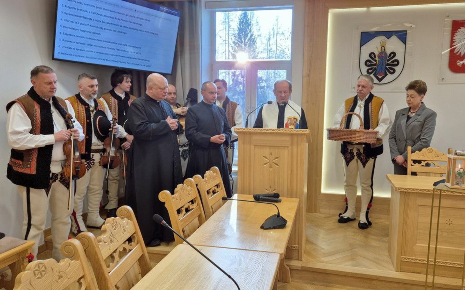 Natomiast muzyczną oprawę zapewniła góralska kapela złożona z pracowników Starostwa oraz radnych. Opłatki poświęcili obecni na sesji księża: ks. dziekan Bogusław Filipiak, ks. proboszcz Piotr Pławecki i ks. proboszcz Maciej Chwarścianek. Z świątecznymi życzeniami i tradycyjnym siankiem na sesję przybyli także przedstawiciele Polskiego Stowarzyszenia na rzecz Osób z Niepełnosprawnością Intelektualną Koło w Zakopanem.