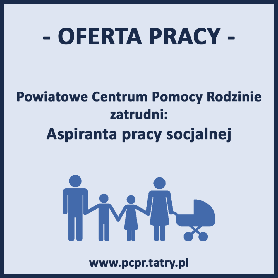 Powiatowe Centrum Pomocy Rodzinie w Zakopanem poszukuje osoby na stanowisko Aspiranta pracy socjalnej. Forma zatrudnienia: umowa na zastępstwo.