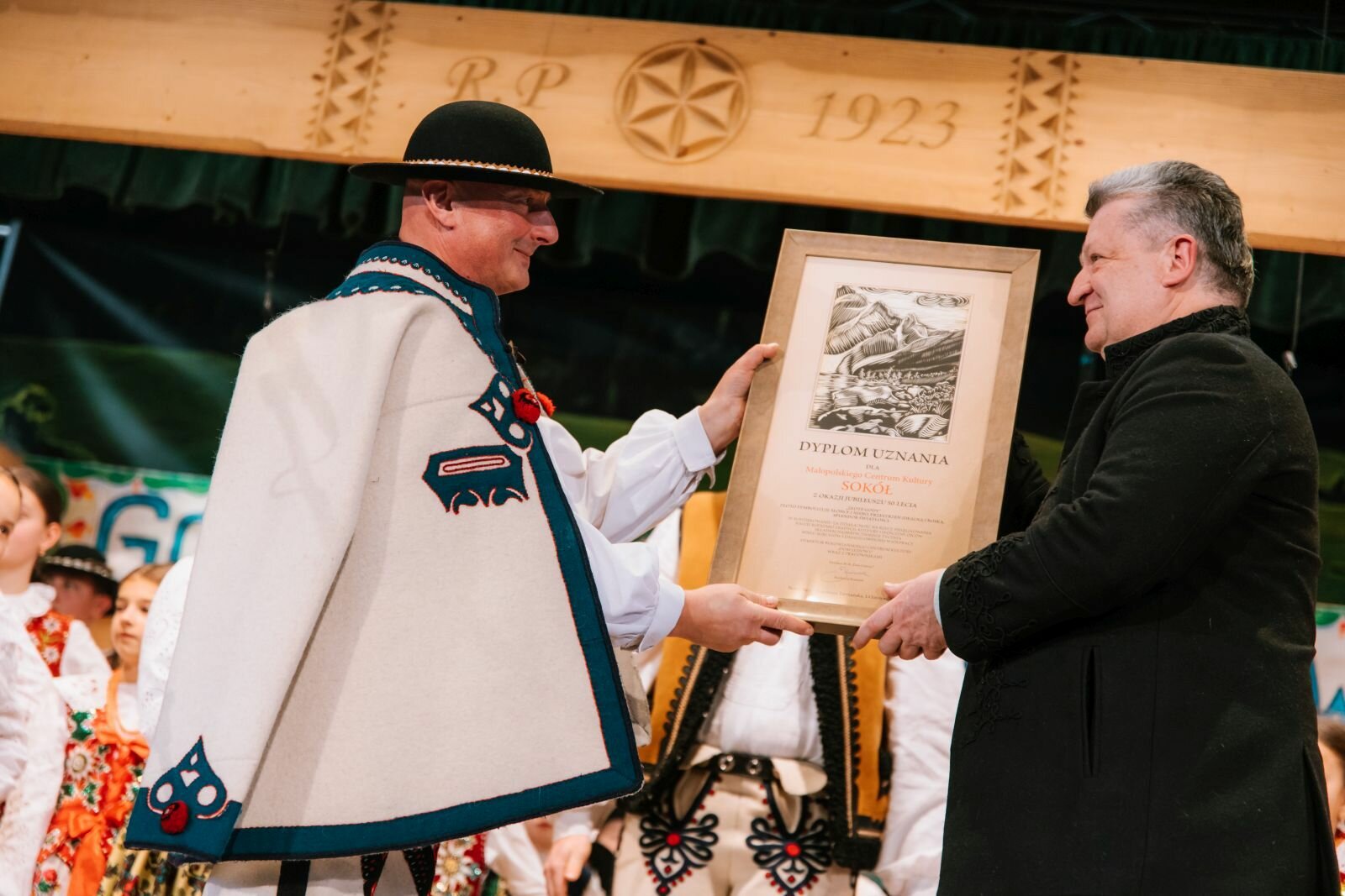 Z okazji obchodzonego w tym roku jubileuszu 50-lecia Małopolskiego Centrum Kultury „Sokół” w Nowym Sączu Dyrektor BCK „Dom Ludowy” w Bukowinie Tatrzańskiej Bartłomiej Koszarek złożył Zastępcy Dyrektora MCK „Sokół” Piotrowi Gąsienicy serdeczne gratulacje oraz przekazał na jego ręce pamiątkowy dyplom i kwiaty.