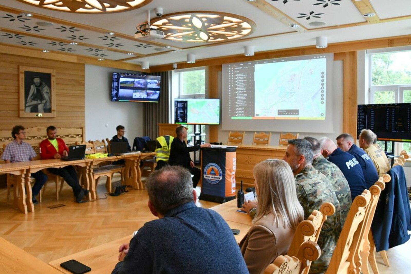 Starostwo Powiatowe w Zakopanem wraz z Komendą Powiatową Państwowej Straży Pożarnej 25 września zorganizowało ćwiczenia Powiatowego Sztabu Zarządzania Kryzysowego. W ich trakcie wykorzystano nowoczesne narzędzie – Wielośrodowiskowy Zautomatyzowany System Zarządzania Kryzysowego JAŚMIN, a w realizacji zadań uczestniczyły wszystkie służby i inspekcje działające na terenie powiatu oraz 40 pozorantów. Wykorzystana została także realistyczna scenografia.