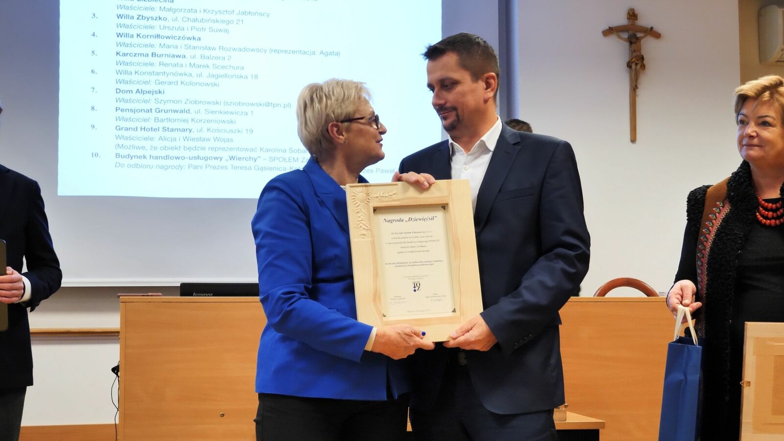 Wyróżnienia "Dziewięćsił" za dokładanie wieloletnich starań w rewaloryzację swoich zabytków - pereł architektury podhalańskiej, cennych dla całego społeczeństwa otrzymali: