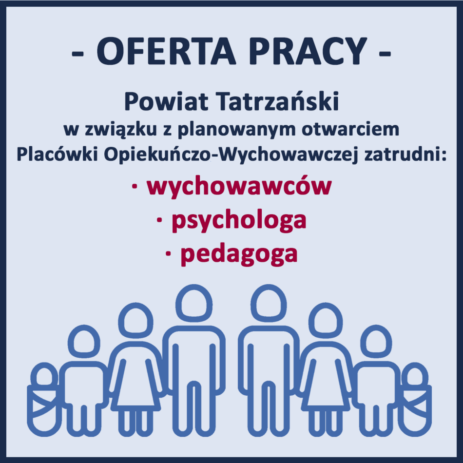 W związku z planowanym przez Powiat Tatrzański na dzień 1 stycznia 2026r. otwarciem nowej Placówki Opiekuńczo-Wychowawczej w Zakopanem zatrudnimy wychowawców, psychologa oraz pedagoga.