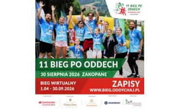 Bieg po Oddech w Zakopanem w tym roku odbędzie się w ostatnią niedzielę wakacji - 30 sierpnia. Dla wszystkich, którzy nie mogą przybyć do Zakopanego organizatorzy proponują wirtualną formułę biegu. Wirtualnie czyli jak? Między 1 kwietnia a 30 września wystarczy pokonać 5 km w dowolnym miejscu na świecie – samodzielnie lub z grupą znajomych, sąsiadów czy lokalnych biegaczy. Każdy kilometr to symboliczne wsparcie dla chorych.