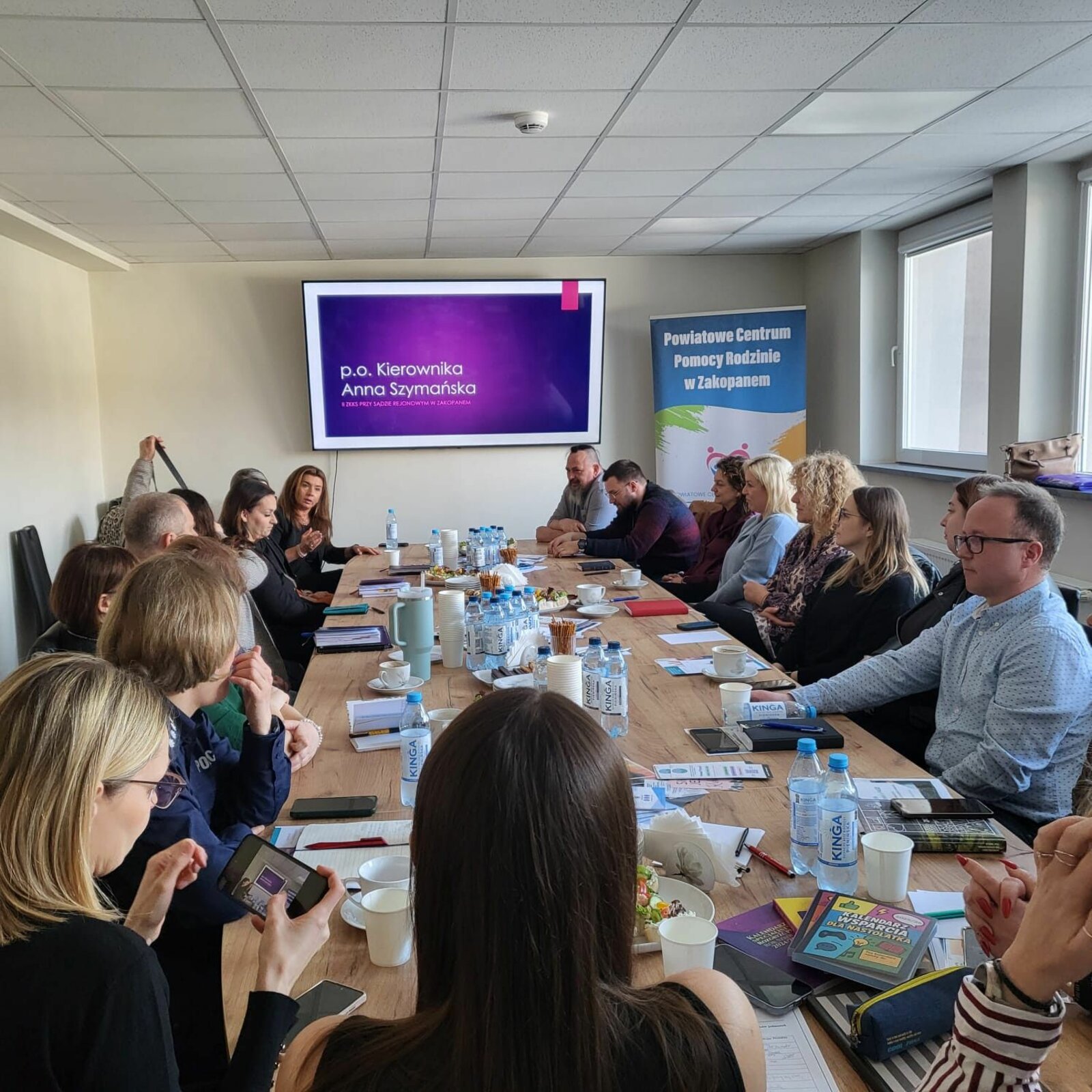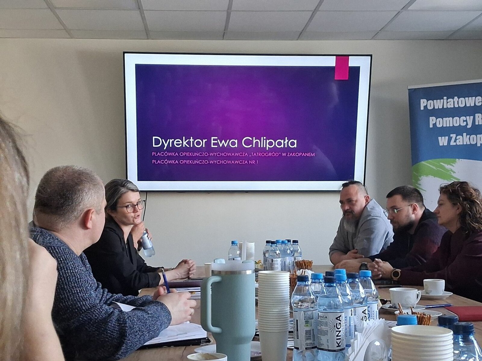 Dyrektor Powiatowego Centrum Pomocy Rodzinie w Zakopanem Renata Zielińska powitała gości i przedstawiła cel spotkania. Dyrektor Centrum podkreśliła, że kluczowym jest, aby instytucje pomocowe i służby funkcjonujące na terenie Powiatu Tatrzańskiego dbały o zacieśnienie współpracy w sytuacjach kryzysowych. Dyrektor PCPR  jako Organizator Rodzinnej Pieczy Zastępczej poinformowała zebranych, że prowadzimy ciągły nabór na kandydatów do pełnienia funkcji rodzin zastępczych i zachęcała uczestników spotkania do zapoznania się z materiałami promującymi rodzinną pieczę zastępczą.